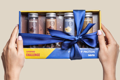 Taste roasted edible crickets in a snack gift box. Enjoy the crunch, protein boost and unique edible insects gift.