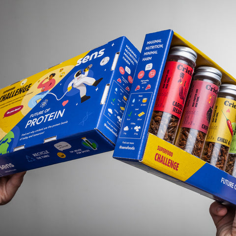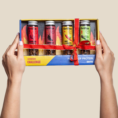 Grillen sind immer noch eine seltene Überraschung! Sie machen Spaß, schmecken gut und haben gleichzeitig eine große Bedeutung – dank ihres positiven Einflusses auf unseren Planeten. Grillen liefern genauso hochwertiges Eiweiß wie das beste Rindfleisch, benötigen dafür aber 2.000-mal weniger Wasser. Mit diesem umweltfreundlichen Set verschenkst du also auch den Wunsch nach einer grüneren Zukunft. Genieße den Snack und teile ihn mit Freunden oder der Familie – sogar dein Chef könnte Gefallen daran finden!