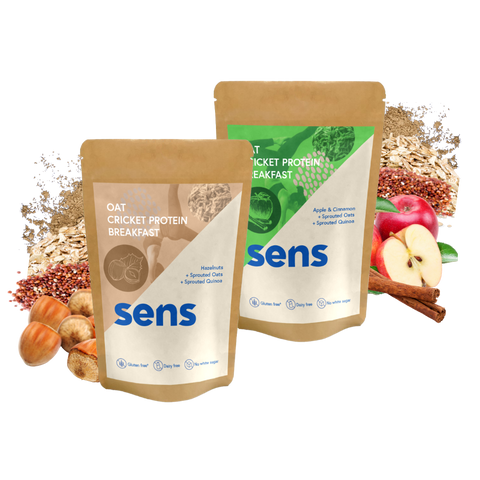 Sens Breakfast is loaded with superfoods to support balanced nutrition (spouted quinoa, spouted oats, cricket protein), including folate, magnesium, zinc, and iron. Plus, they are rich in fiber and protein, nutrients that play an important role in helping you feel full. Compared with regular grains sold in supermarkets, Sens uses sprouted oats, and sprouted quinoa which favors easier digestion. Rice powder naturally adds creaminess to this yummy breakfast.