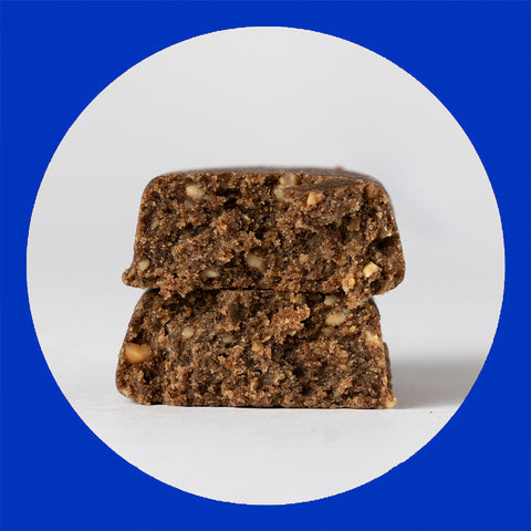 Most protein comes from high-quality cricket flour, which is also the source of high-quality fats, fibre, and micronutrients like B12 and iron. We add quality plant proteins like fava bean protein to enrich the amino acid profile. Finally, we used a tiny amount of dates and chicory root fiber to bind everything together. Maximal fuel, minimal ingredients.